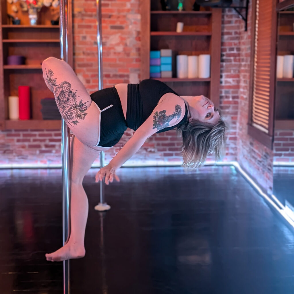 I first started pole in 2021 as a way to incorporate a different kind of workout into my fitness journey. After a few classes, I was hooked became an instructor and manager of the studio. In May of 2025 I purchased the studio.